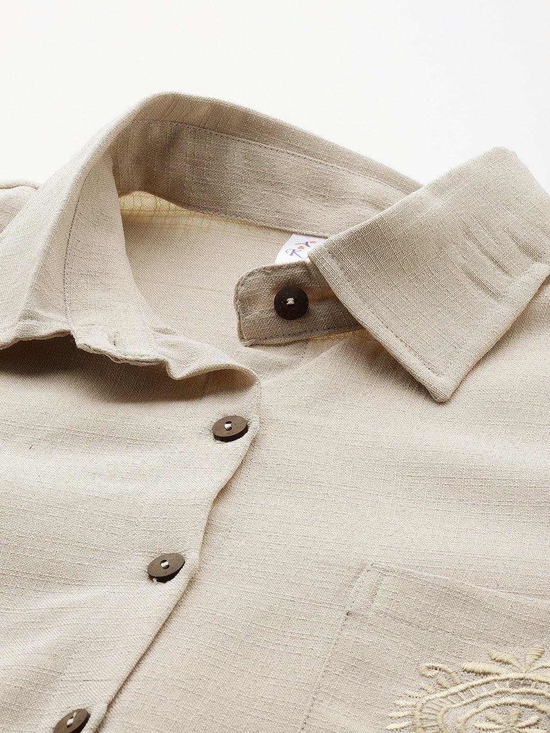 • Beige textured shirt with embroidered detail