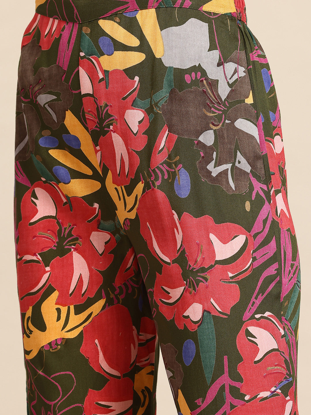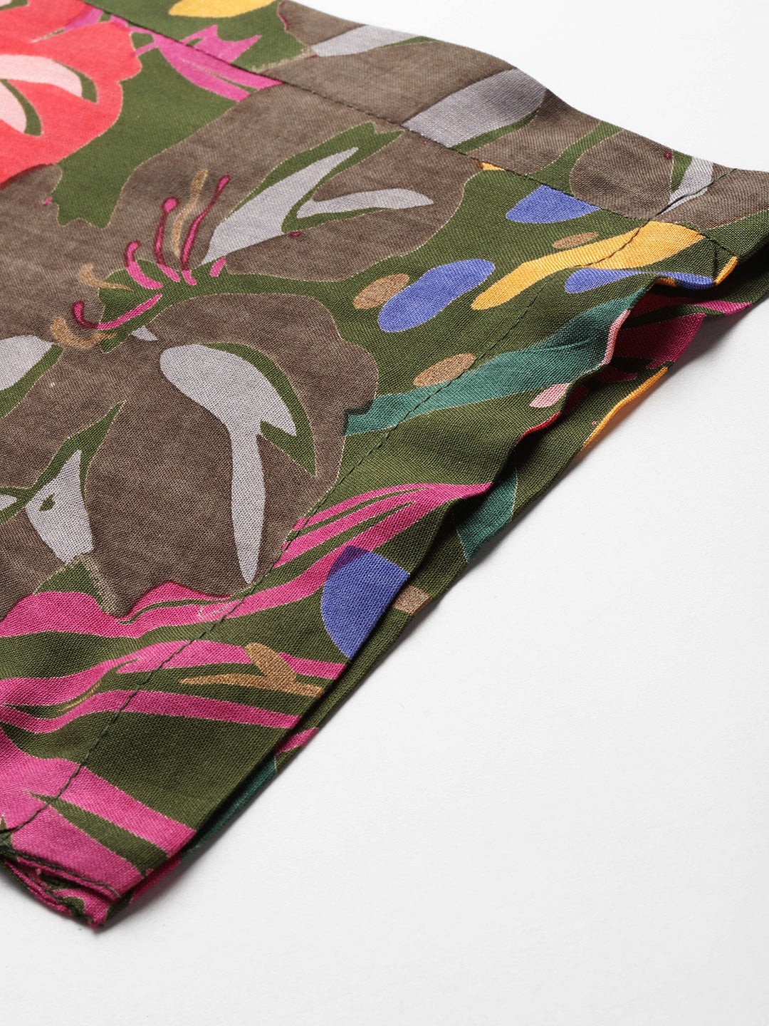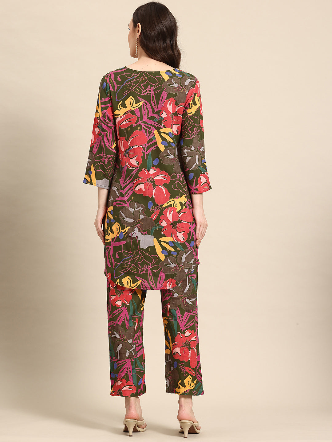 Product Details  This co-ords consists of a Tunic & Trousers Green and multicolored floral print Tunic, has a round neck, has three-quarter, regular sleeves  Green and multicolored floral print Trousers,...