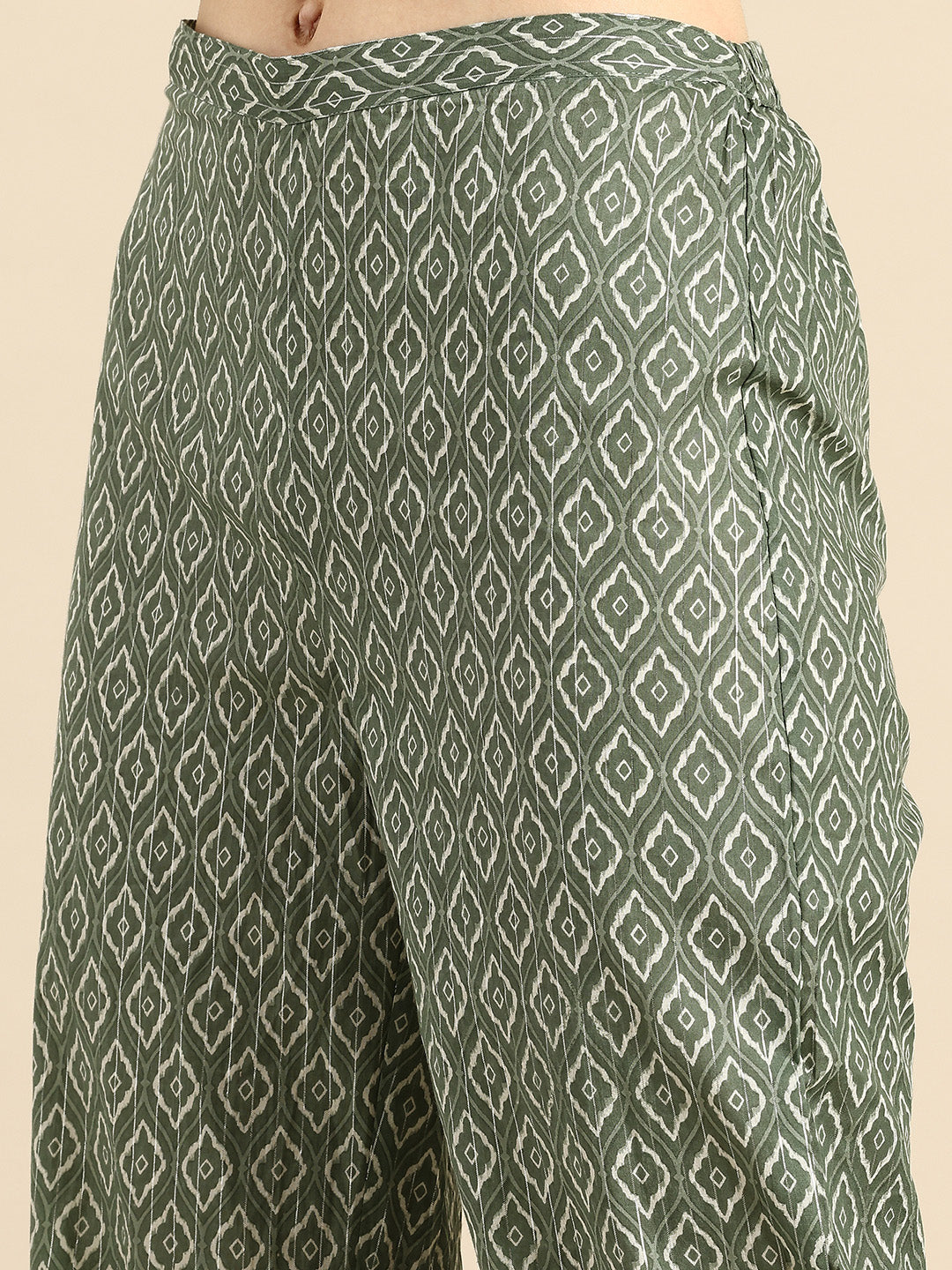 Green and beige printed mid-rise trouser, slip-on closure hem