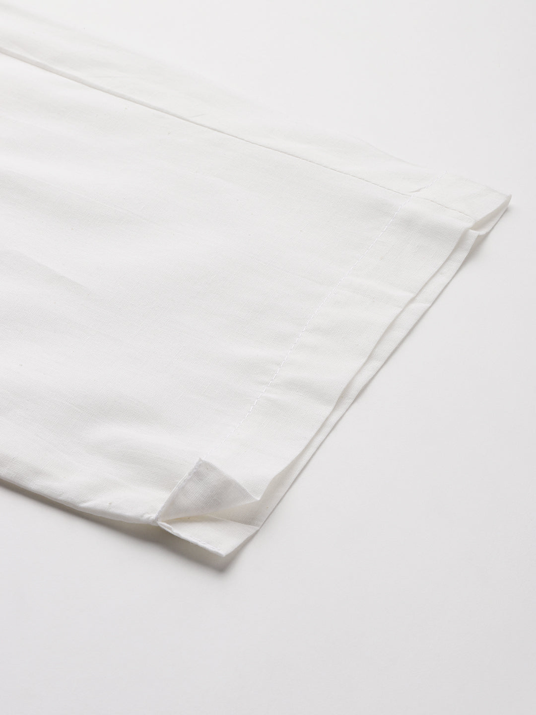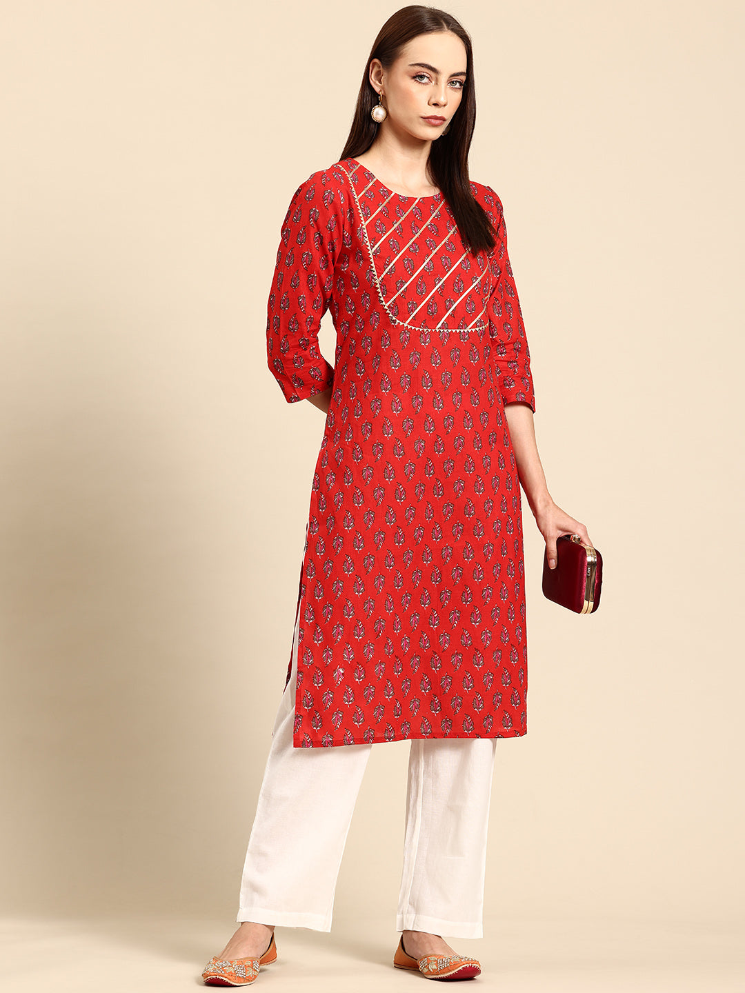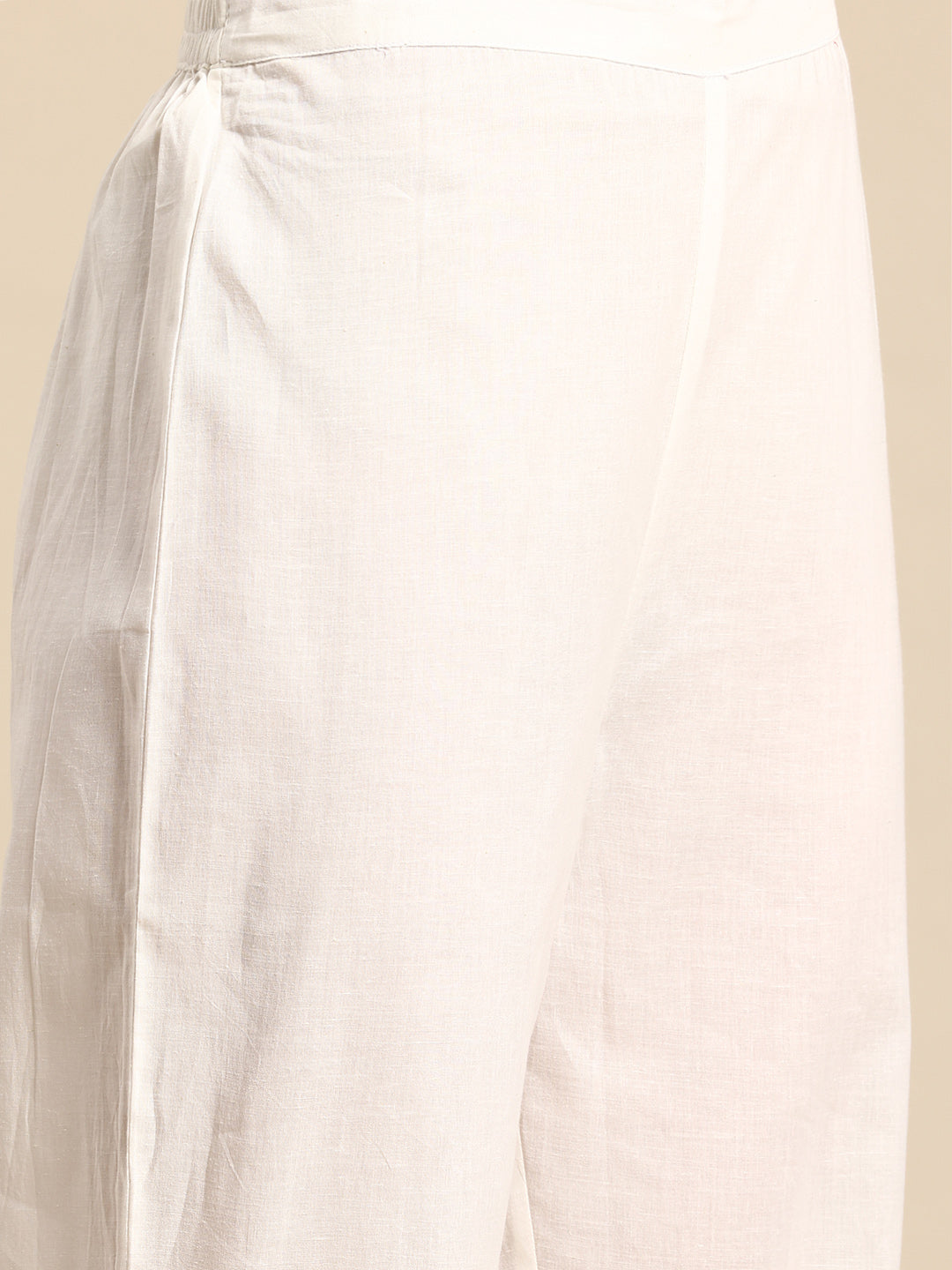 Kurta design: Floral printed Straight shape Regular style Round neck, three-quarter regular sleeves Gotta patti detail Calf length with straight hem Pure cotton machine weave fabric Trousers design: Solid Trousers...